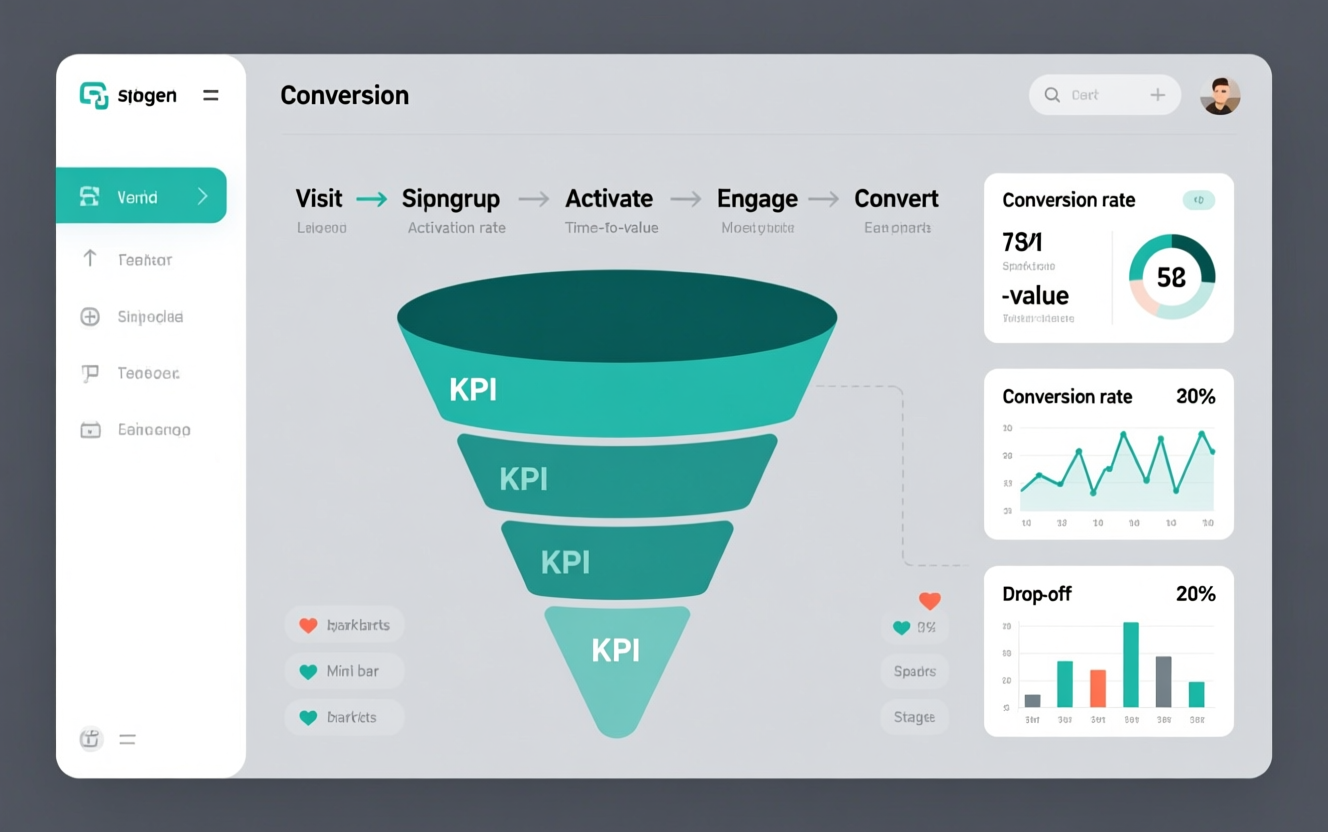 Mapear o funil desde signup → ativação → uso recorrente → upgrade permite localizar drop-offs. Ferramentas como Amplitude, Mixpanel e Google Analytics (eventos) ajudam a rastrear eventos críticos. Um exemplo de análise: se 60% completam o cadastro mas só 15% convidam colegas (quando colaboração é core), foque em melhorar convites e benefícios imediatos de colaboração.